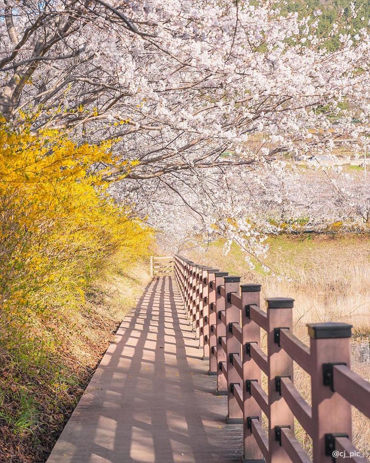 조용하고 아기자기한 이 마을은 봄이면 벚꽃 터널 길을 걸으며 샛노란 개나리도 함께 감상할 수 있는 여수의 봄 여행 명소입니다. 특히, 승월저수지에는 수변 데크길이 있어 호수와 어우러진 화사한 봄꽃 풍경을 감상하기 좋습니다.