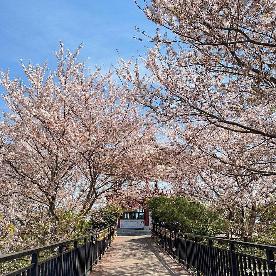 여수 시가와 오동도를 한눈에 볼 수 있는 곳으로, 해상 케이블카 자산정류장 옆, 일출정으로 오르는 길에는 벚꽃이 흐드러지게 피어나는 아름다운 풍경을 감상할 수 있습니다.